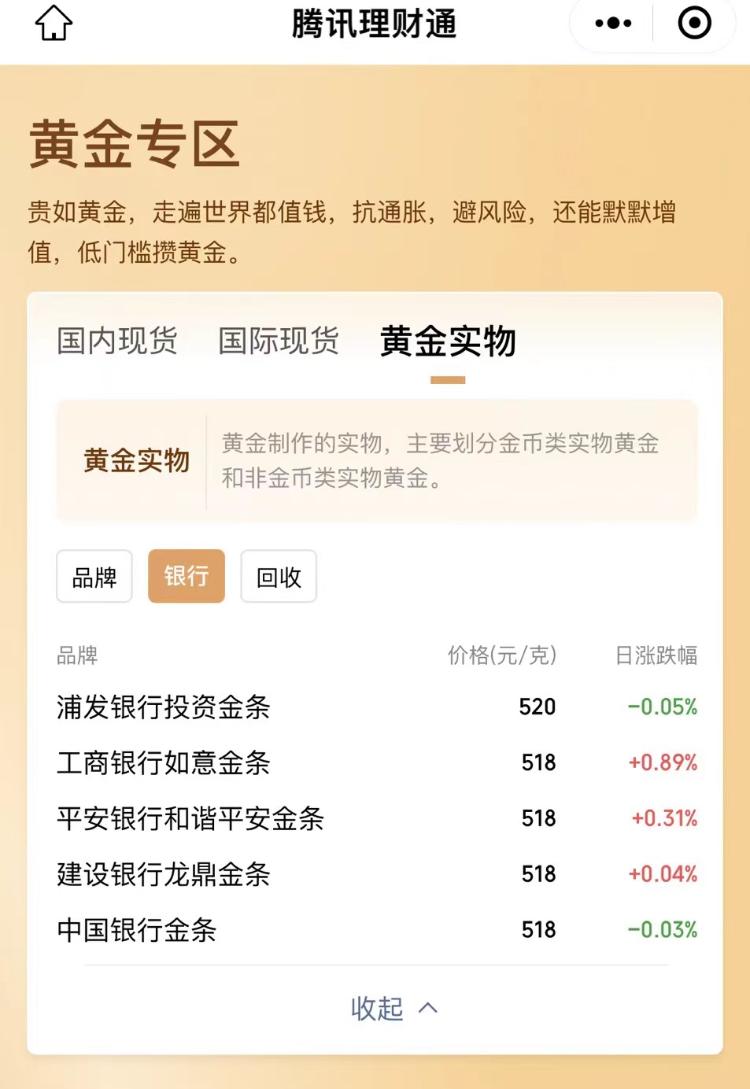 多家银行的线上APP贵金属或黄金专区上线多品类金质饰品,包括金条、金币、手镯、项链、吊坠等。对比来看,银行的金饰售价对比线下金店确实存在一定优势,且在品类上也不逊色。